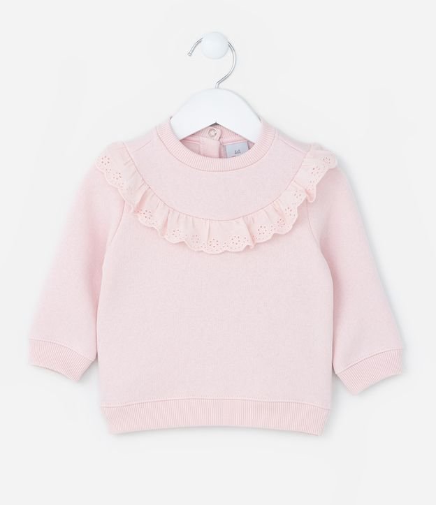 Blusão Infantil Quentinho com Babado Broderie - Tam 0 a 18 meses Rosa