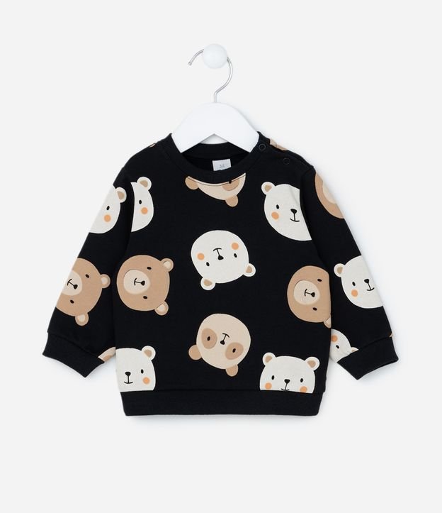 Blusão infantil confeccionado em moletom com forro quentinho, gola redonda, mangas longas e estampa de ursinhos.
