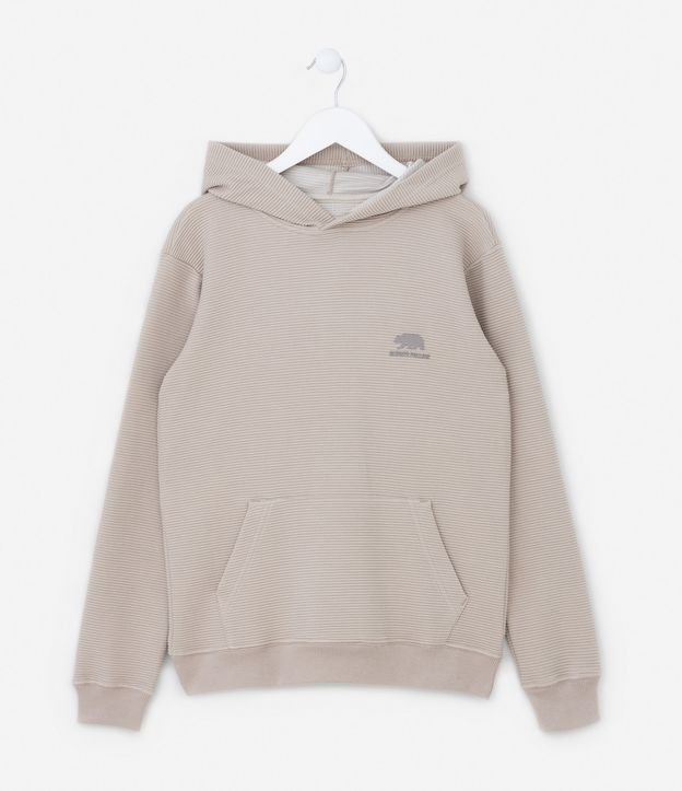 Blusão infantil texturizado com capuz, com bolsos canguru.