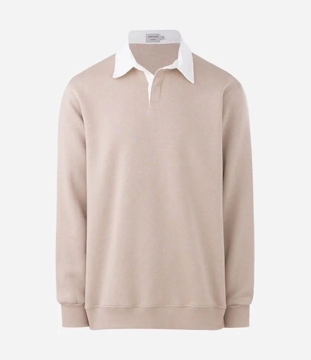 Blusão Moletom com Felpa e Gola Polo Contrastante Bege