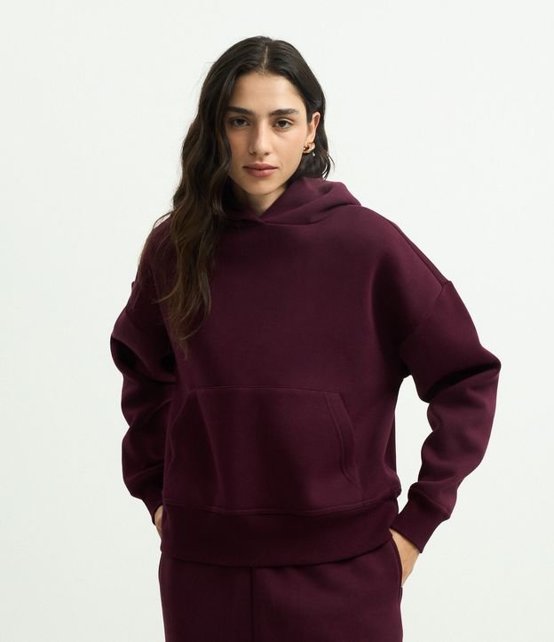 Blusão Moletom em Algodão com Bolso Canguru Vermelho