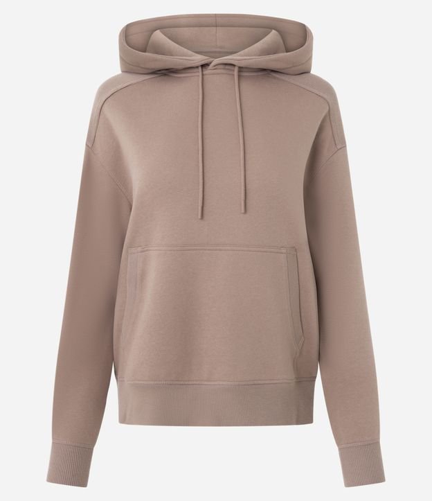 Blusão Moletom Oversized Esportivo com Bolso Canguru Bege
