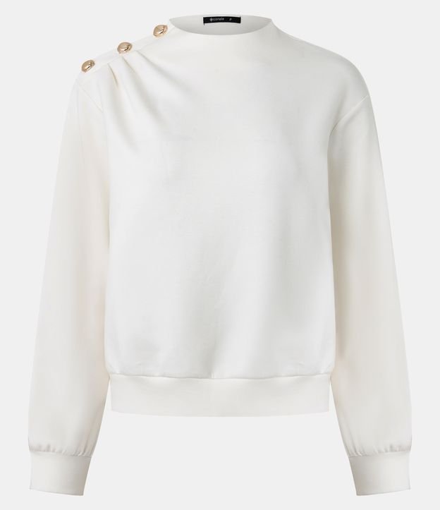 Blusão Moletom sem Felpa com Botões no Ombro Branco