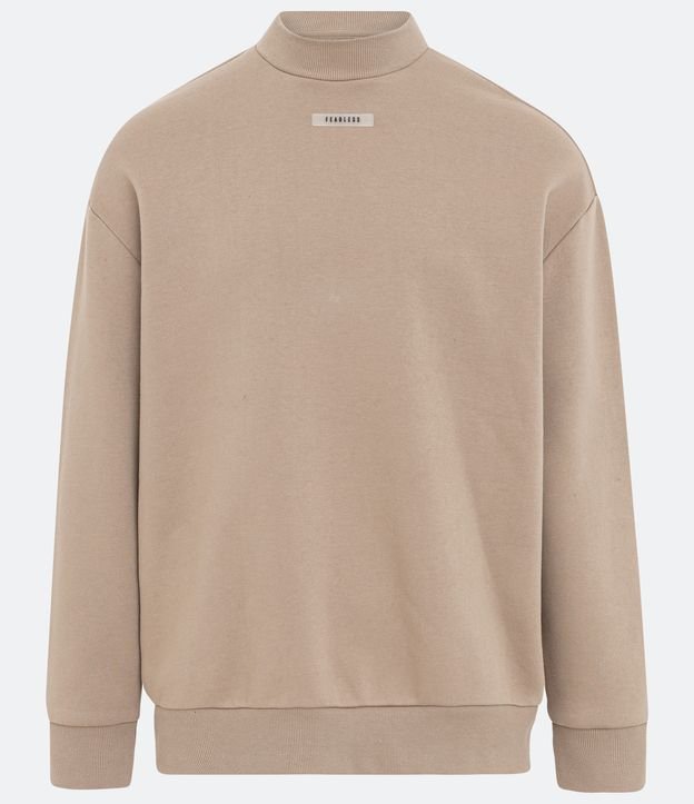 Blusão Relaxed em Moletom com Etiqueta Emborrachada Mock Neck