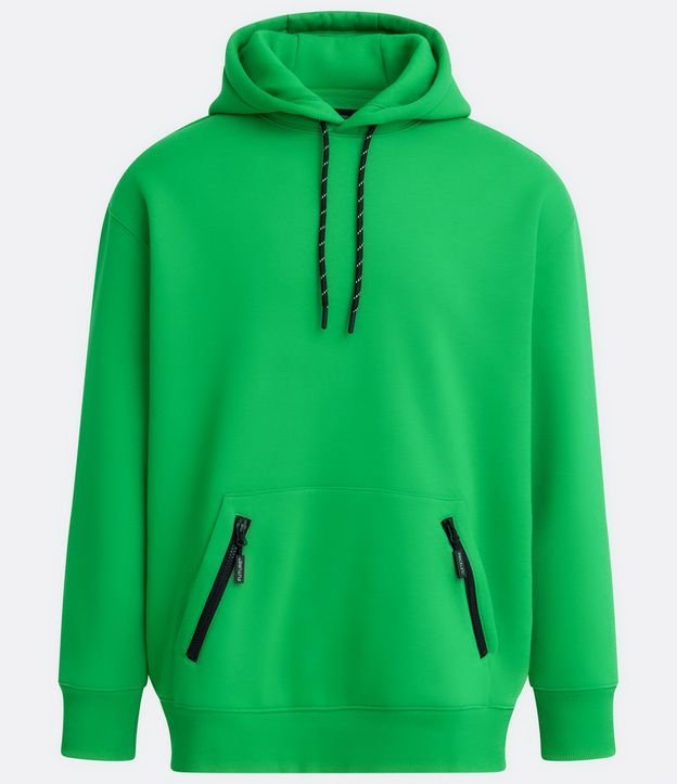 Blusão Relaxed Fechado em Algodão com Capuz e Zíper no Bolso