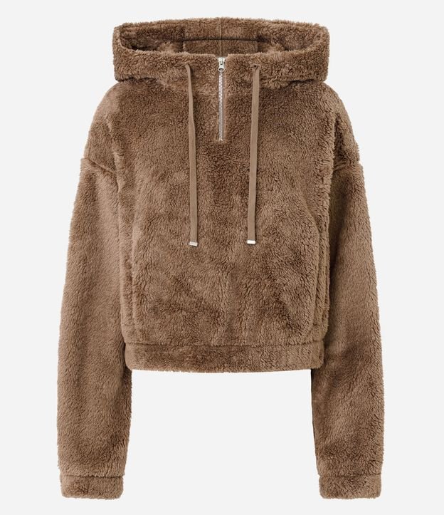 • Blusão Sherpa com Capuz e Zíper Marrom 3