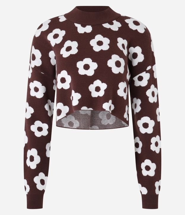 Blusão Slim em Jacquard com Estampa de Margaridas Marrom