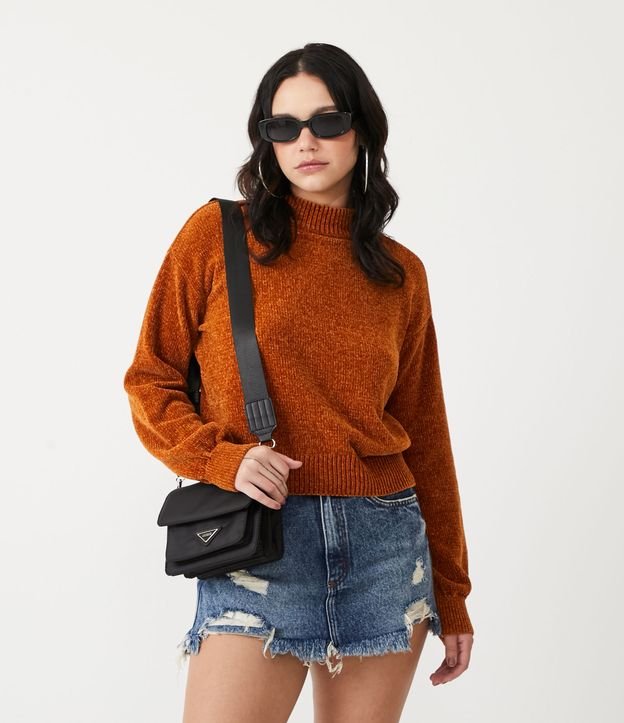 Suéter em Chenille com Golinha Alta e Ribanas