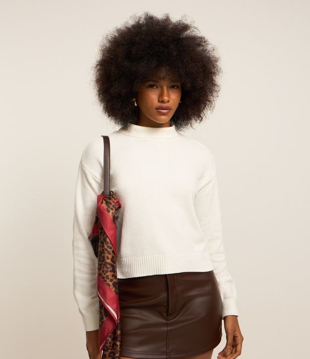 Suéter em Chenille com Golinha Alta e Ribanas Branco