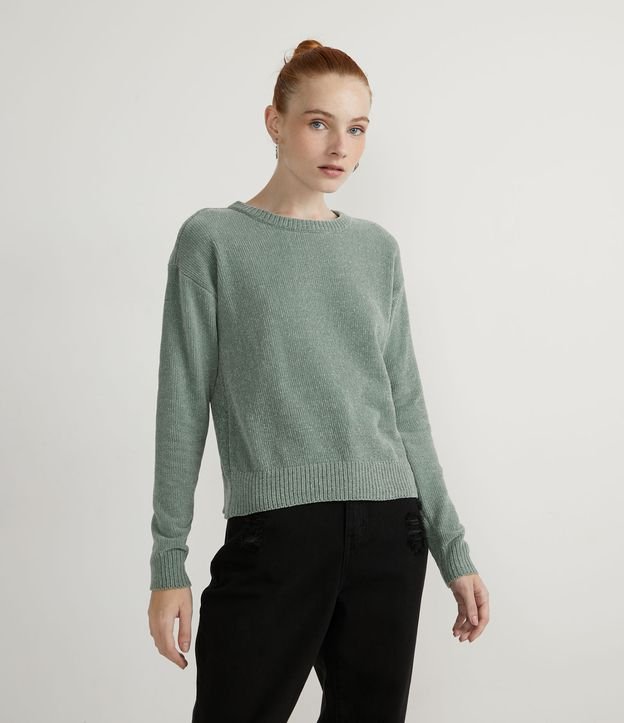 Blusão Suéter em Tricô Chenille com Cava Deslocada