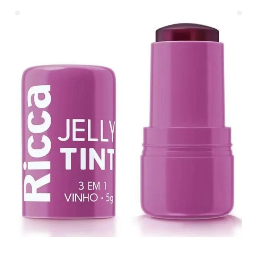 • Blush Multifuncional Em Bastão Ricca Jelly Tint 3 Em 1 Vinho 5g Vinho 1