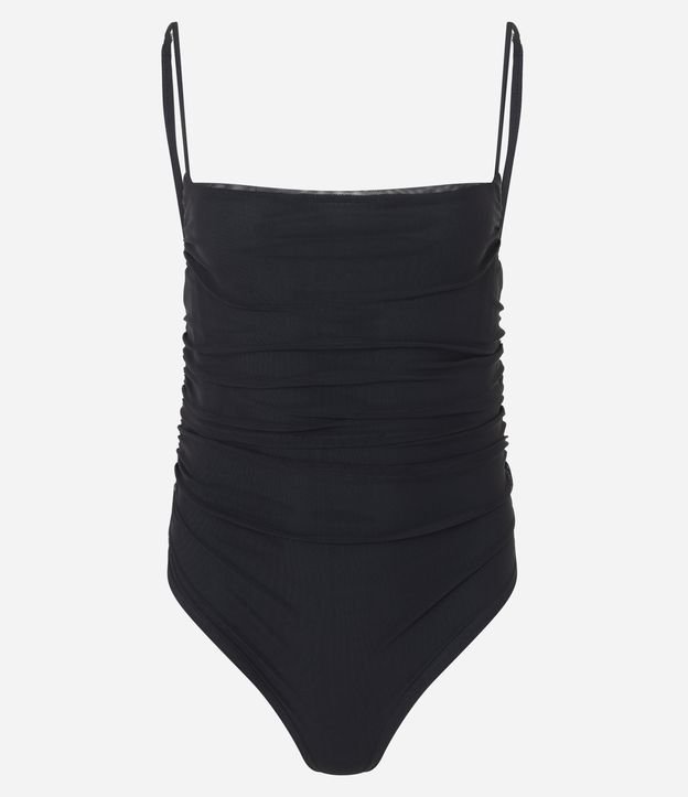 Body Alça Fina em Tule com Franzidos Laterais Preto