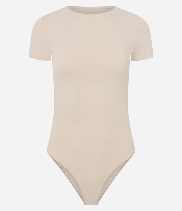 Body Básico em Poliamida com Mangas Curtas Areia