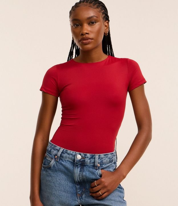 Body Básico em Poliamida com Mangas Curtas Vermelho