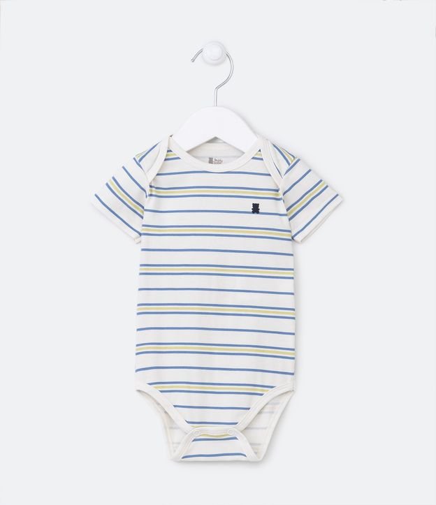 Body Básico Infantil em Cotton Listradinho com Ursinho no Peito - Tam 0 a 18 meses