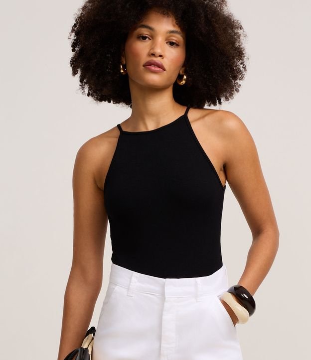 Body Canelado em Ribana com Decote Reto Preto