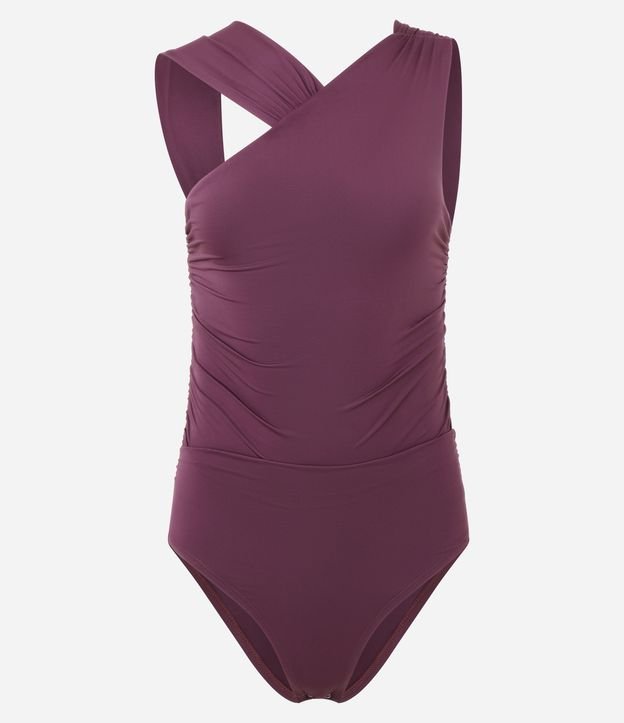 Body em Helanca com Decote Assimétrico e Drapeados Roxo