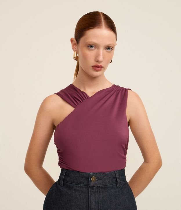 Body em Helanca com Decote Assimétrico e Drapeados Roxo