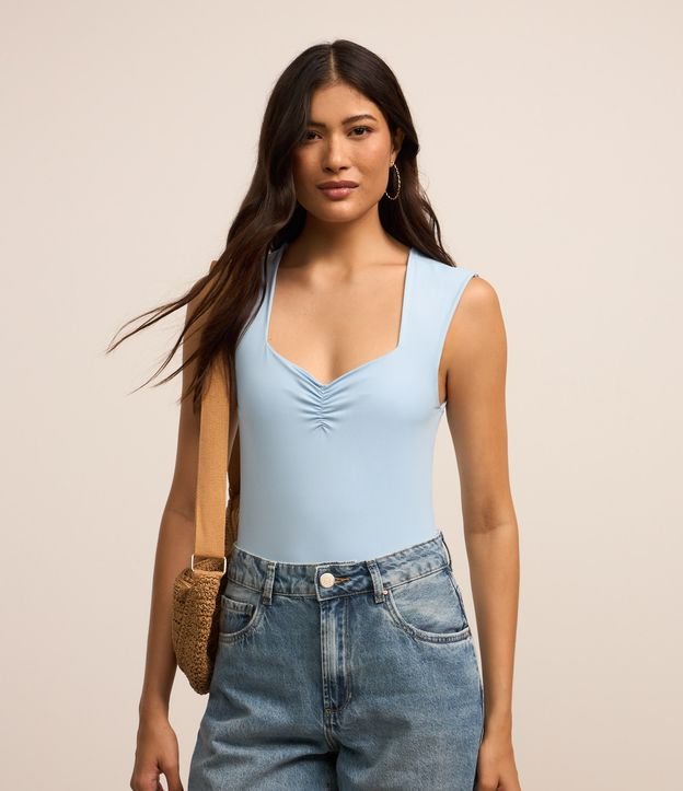 Body em Microfibra com Decote Coração Franzidinho Azul