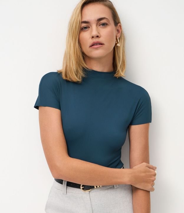 Body feminino, confeccionado em microfibra, com golinha média, mangas curta e superfície sem estampa.