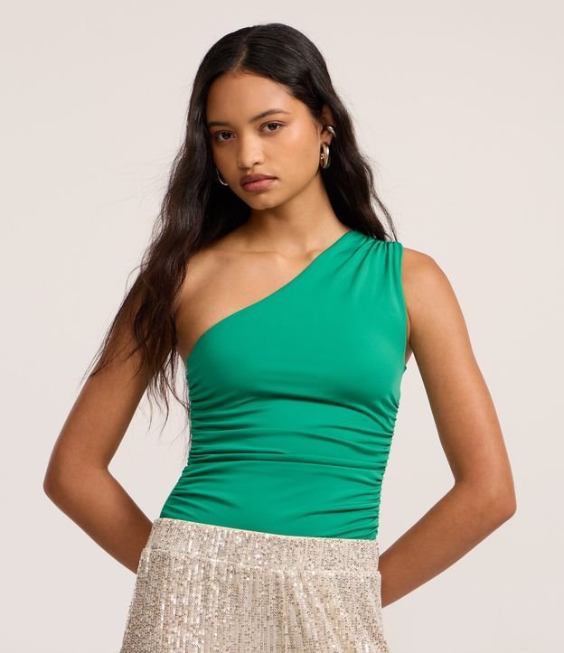 Body em Microfibra Ombro Só com Franzidos Laterais Verde