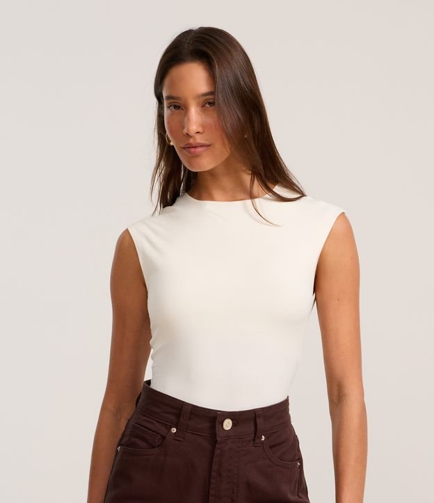 Body feminino confeccionado em poliamida, com gola redonda, mangas curtas e cava deslocada. Possui fechamento no entrepernas.