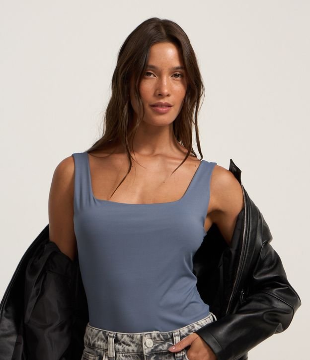 Body em Poliamida com Decote Redondo e Alça Média Azul