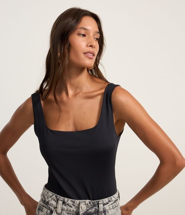 Body em Poliamida com Decote Redondo e Alça Média Preto