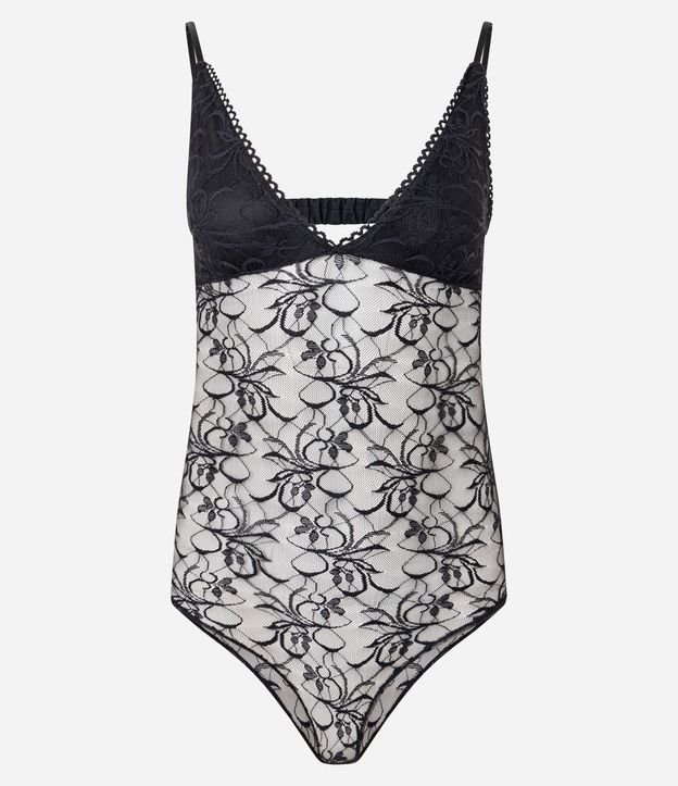 Body feminino confeccionado em renda flora com tule, decote v com frufrus, alça fina ajustável, tule com transparência, alça nas costas com elástico.
