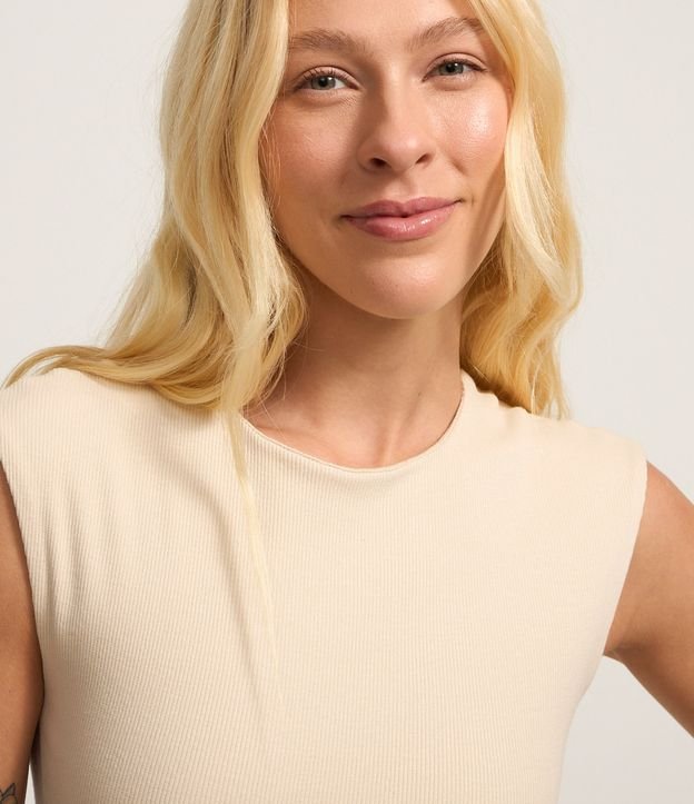 Body em Ribana com Ombro Caído Bege