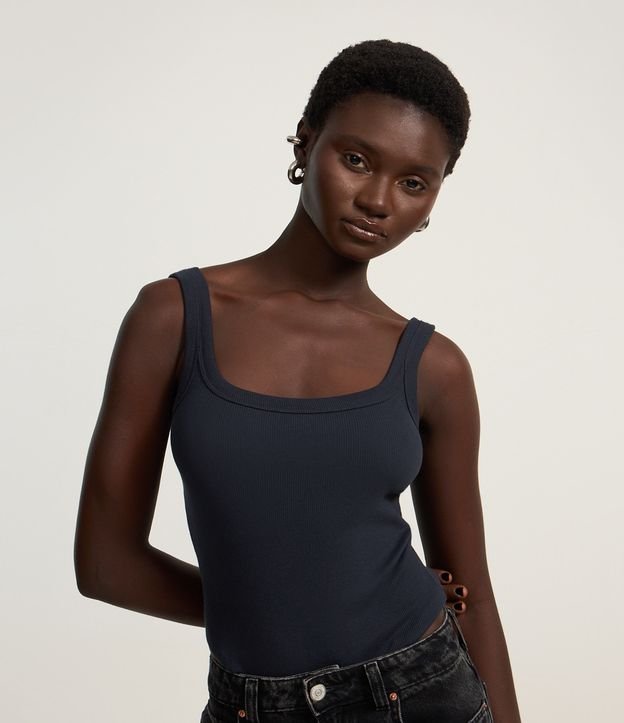 Body em Ribana Sem Manga com Viés Transpassado Azul