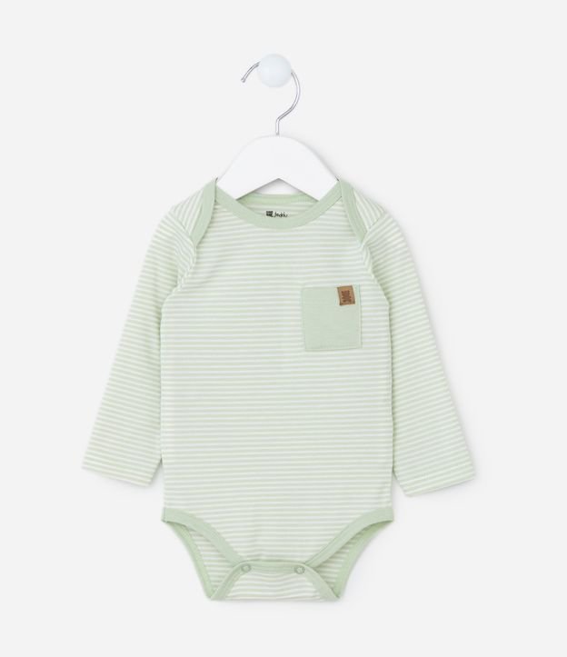 Body Infantil com Bolsinho e Estampa Listrada - Tam 0 a 18 meses
