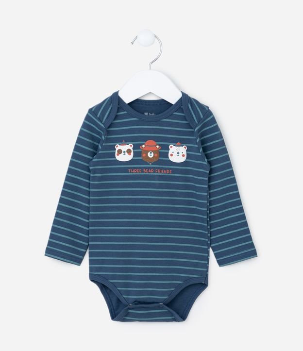 Body Infantil com Estampa Bichinhos e Listras - Tam 0 a 18 meses