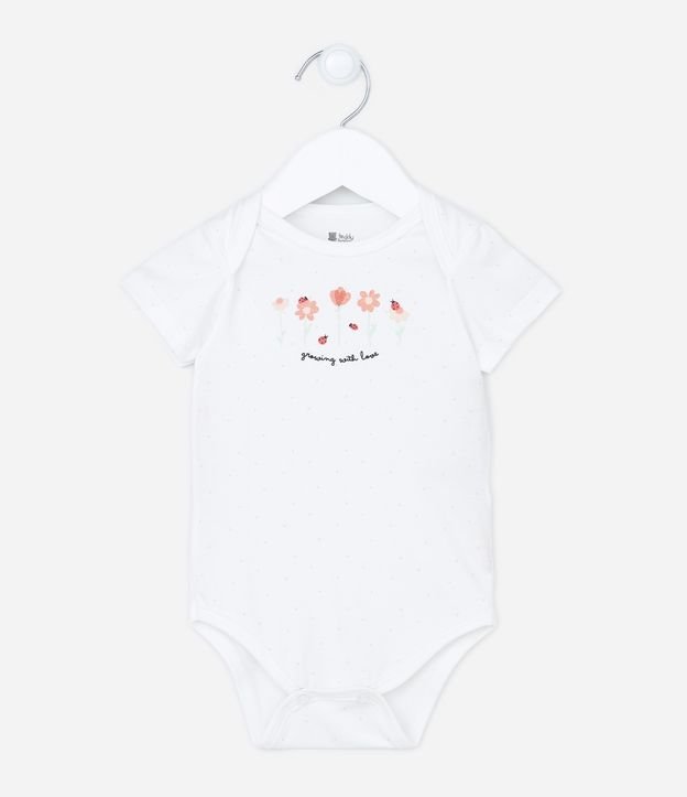 Body Infantil com Estampa de Flores e Joaninhas - Tam 0 a 18 meses