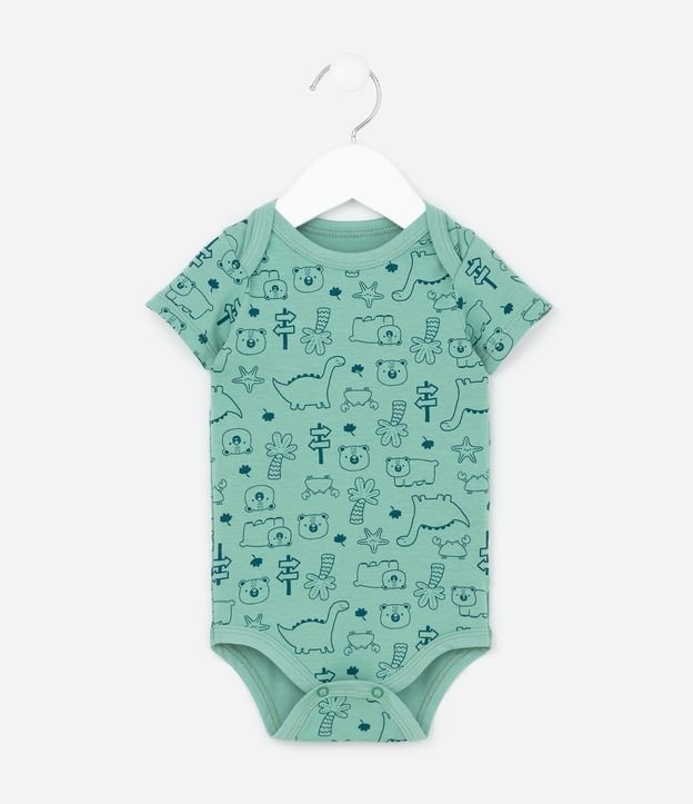 Body Infantil com Estampa de Urso e Dino - Tam 0 a 18 Meses Verde