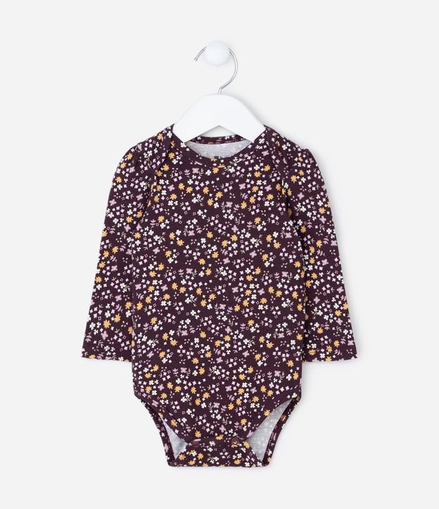 • Body Infantil com Estampa Floral Liberty – Tam 0 a 18 Meses Vinho Escuro 1