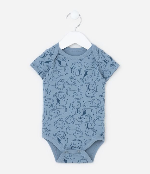 Body Infantil com Estampa Leãozinho - Tam RN a 18 meses Azul
