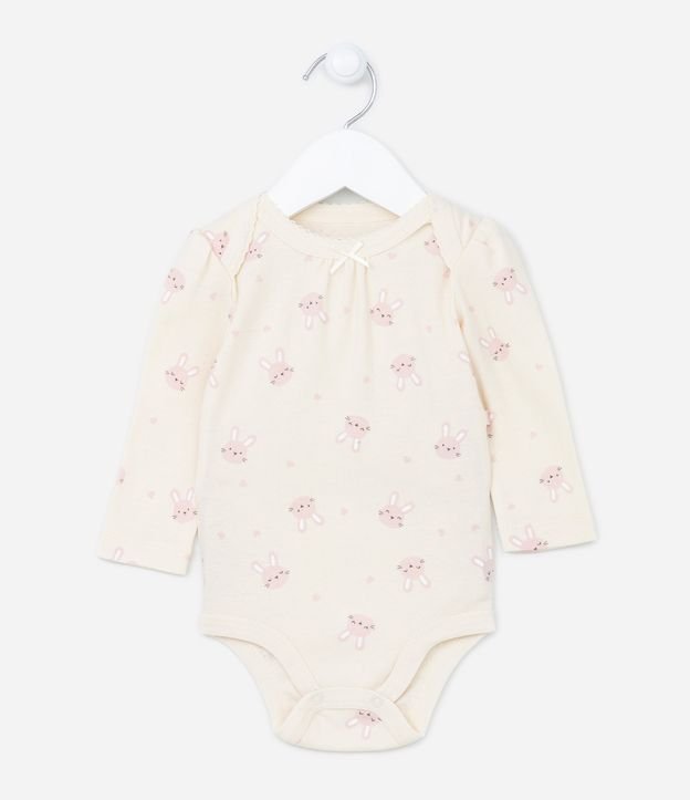 Body Infantil com Gola Americana e Estampa de Coelhinhos - Tam RN a 06 meses