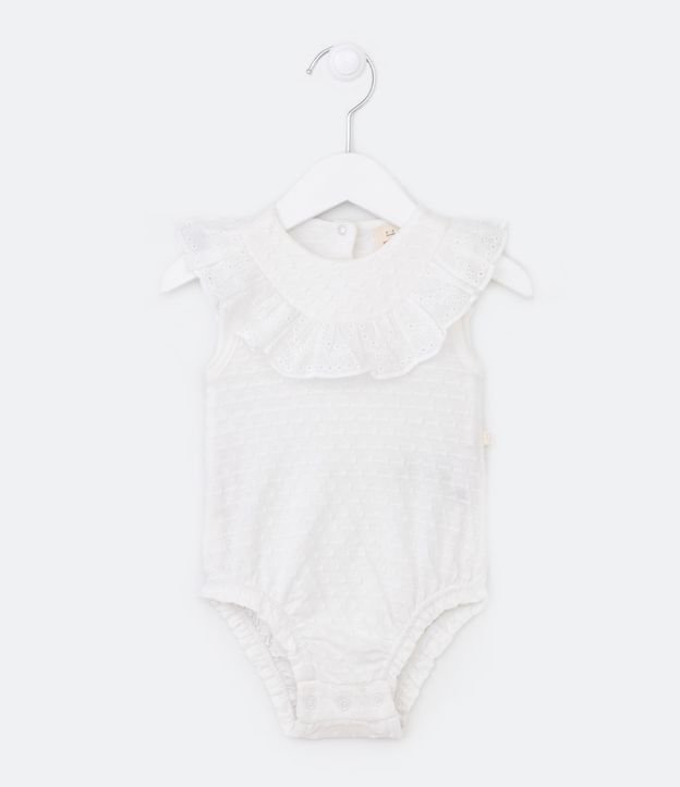 Body Infantil com Textura e Babado em Broderie - Tam 0 a 18 meses
