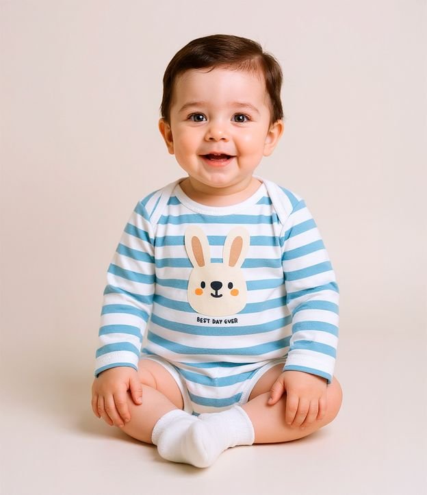 Body Infantil em Algodão com Estampa Coelho - Tam 0 a 18 meses