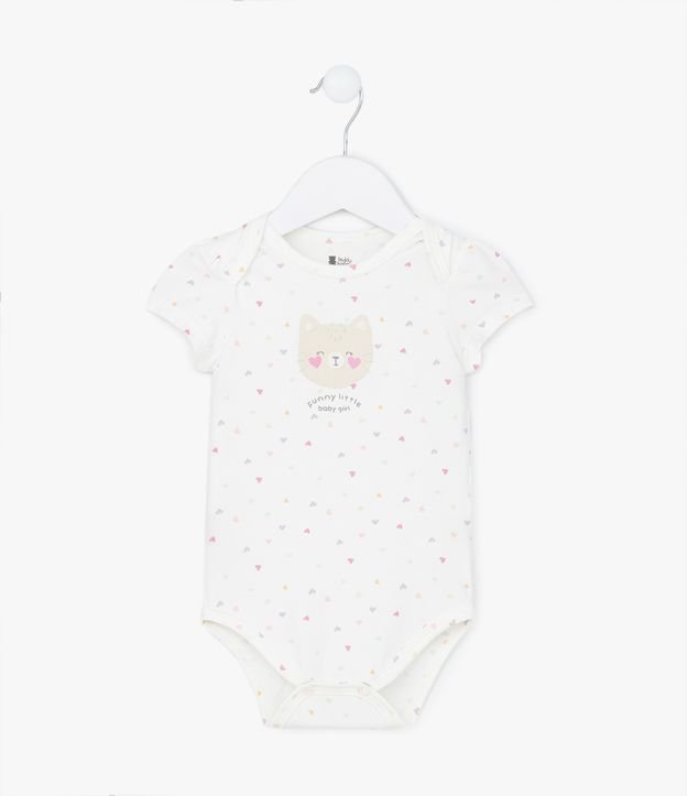 Body Infantil em Algodão com Estampa de Gatinha e Corações - Tam RN a 18 meses