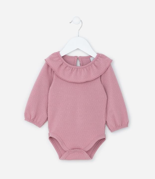 Body Infantil em Algodão Texturizado com Babado na Gola - Tam 0 a 24 meses