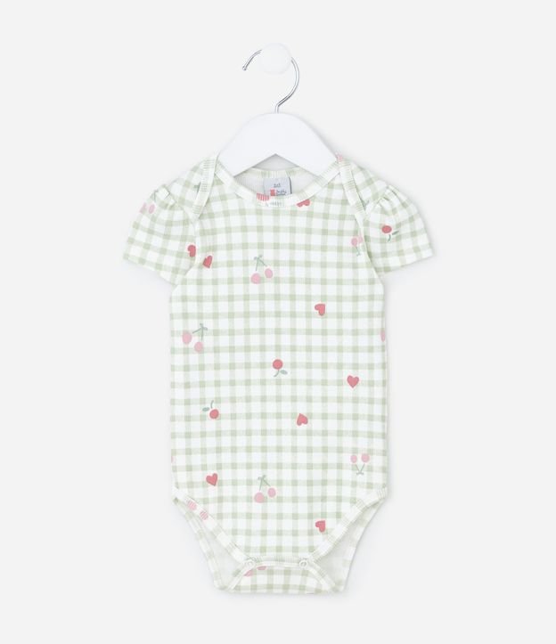 Body Infantil em Vichy com Estampa de Cerejinhas – Tam RN a 18 Meses Verde/Branco