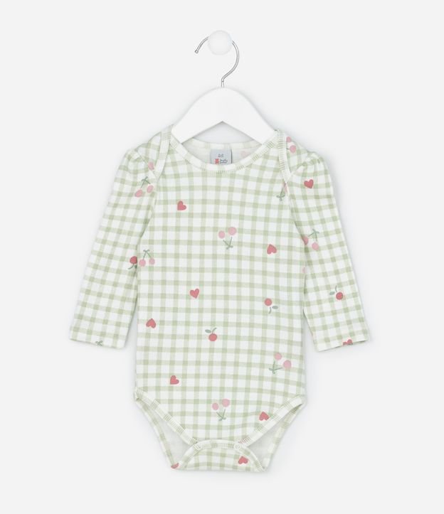 Body Infantil em Vichy com Estampa de Cerejinhas – Tam RN a 18 Meses Verde/Branco