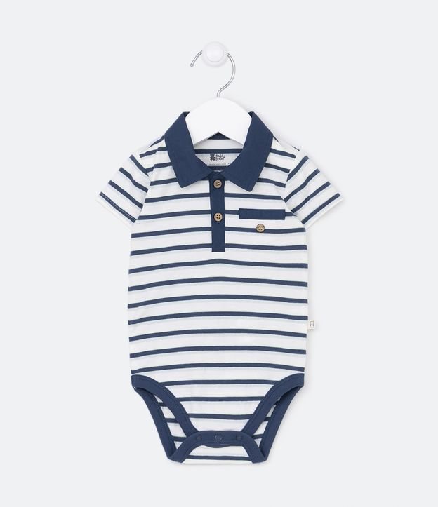 Body Infantil Listrado com Gola Polo e Bolso Embutido - Tam 0 a 18 meses