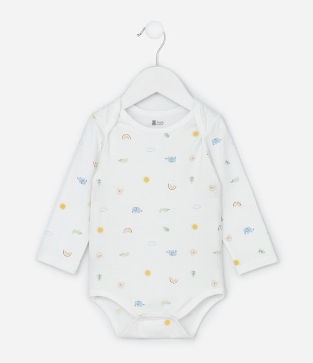 Body Infantil Manga Longa com Estampa Ícone de Arco-íris Tam RN a 18 Meses Branco
