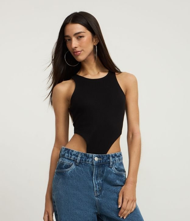 Body Nadador em Ribana com Corte Cavado Preto