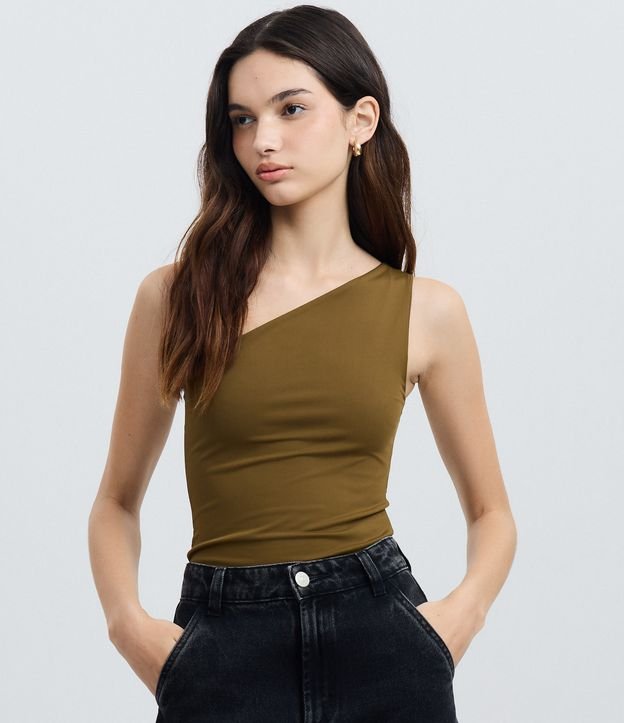 Body básico com um ombro só e sem mangas.