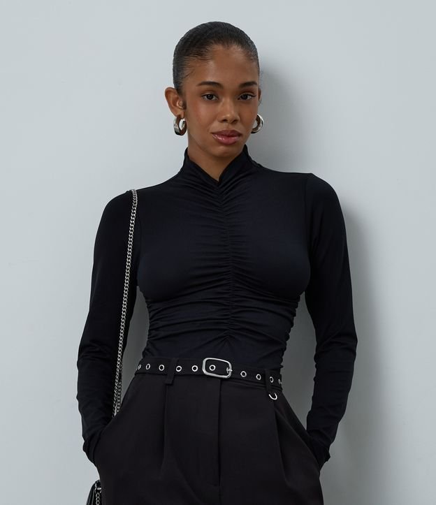 Body Seamless com Gola Alta e Franzido na Cintura Preto