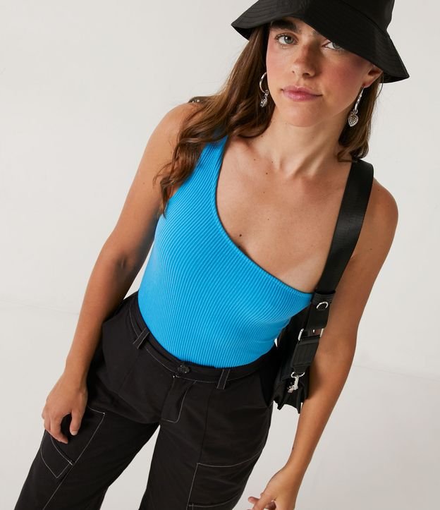 Body Sem Manga em Algodão Canelado com Decote Ombro Só